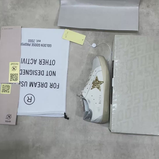 Golden Goose Super-Star – White Ice Gray Gold Glitter